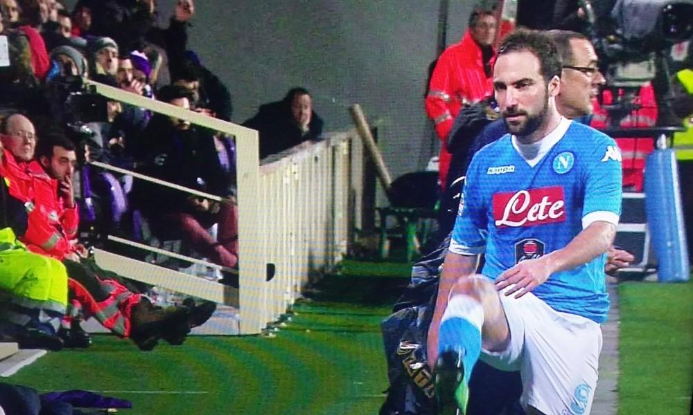 Il giornalista Claudio Raimondi, nel post partita di Napoli-Fiorentina ha riportato la notizia di una reazione nervosa di Gonzalo Higuain dopo la sostituzione e di una arrabbiatura di Maurizio Sarri nei confronti di Lorenzo Insigne. Ecco quanto dichiarato a Mediaset Premium: “Higuain era nervoso a causa del cambio e per questo ha calciato la bottiglietta. Al termine della partita Sarri ha ripreso Insigne fin dentro gli spogliatoi per spingerlo a riuscire in campo a regalare la maglia ai tifosi azzurri”.