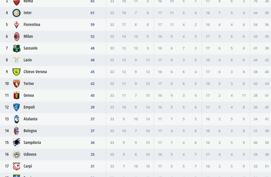 Esordio vincente per Christian Brocchi. Il Milan torna alla vittoria grazie alla rete di Bacca al 71′ e si porta a -7 dal quinto posto. Roma a -5 dal Napoli, Juventus a +9, sempre più vicina al titolo.