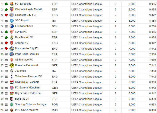 RANKING STAGIONALE (Dal sito ufficiale della Uefa):