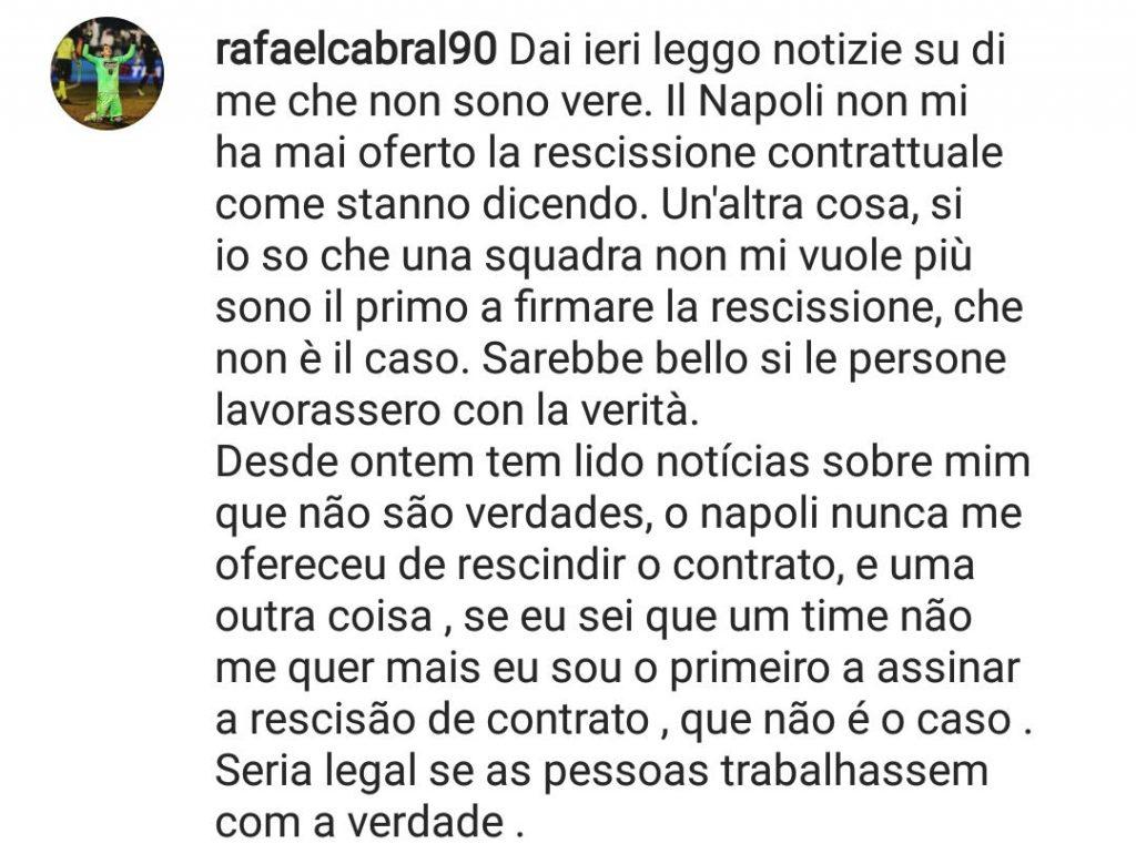 Rafael e il Napoli, un rapporto in scadenza in attesa di rinnovo, o forse no. Il dubbio non trova chiarezza, ma finalmente il portiere ancora azzurro ha detto la sua a riguardo.