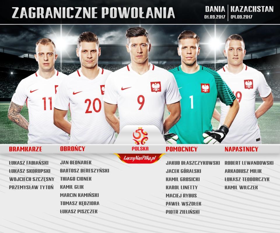13.35 – Come si legge sul sito ufficiale, la Polonia ha diramato la lista dei convocati in vista delle due sfide cruciali per la qualificazione ai Mondiali del 2018 in Russia, rispettivamente contro Danimarca e Kazakistan.