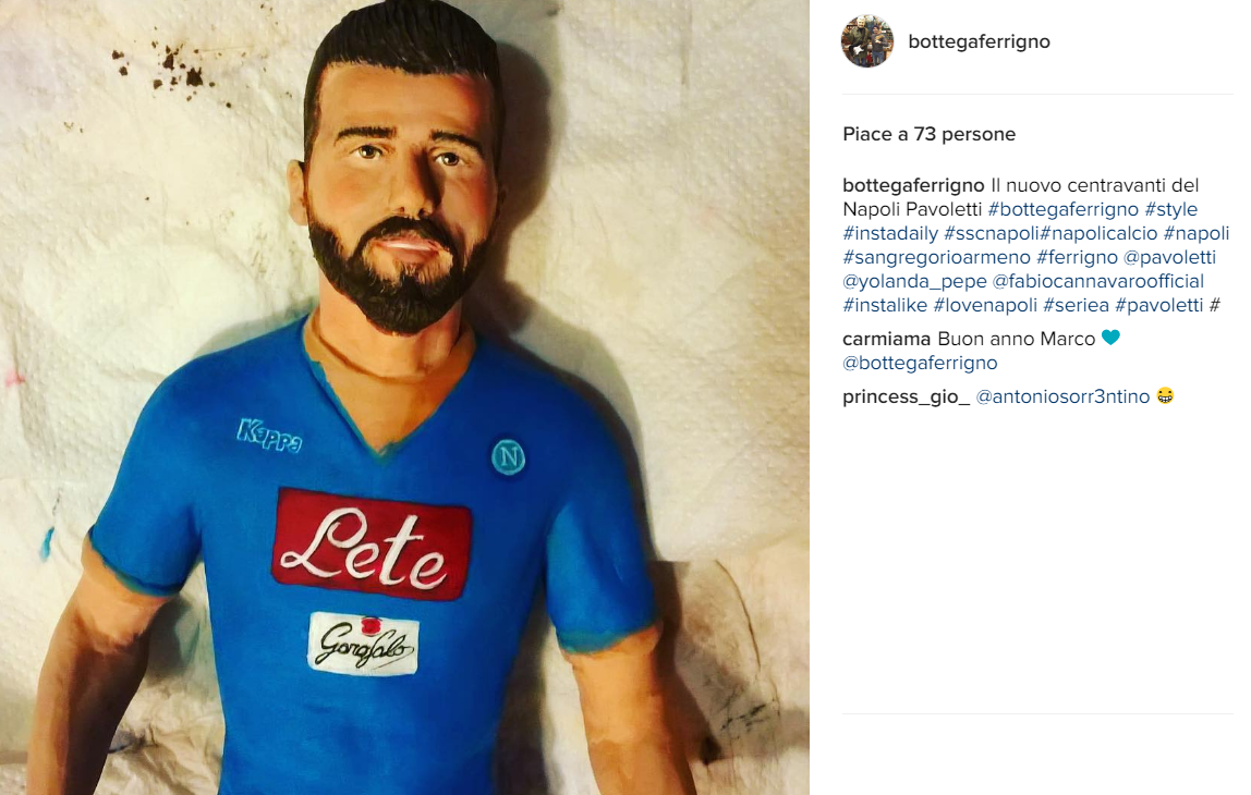 Non è ancora arrivata l’ufficialità dell’acquisto di Leonardo Pavoletti ed in città già spuntano le prime statuette dedicate all’attaccante toscano. A San Gregorio Armeno, infatti, il maestro Ferrigno ha realizzato il pastore che rappresenta il nuovo centravanti azzurro.