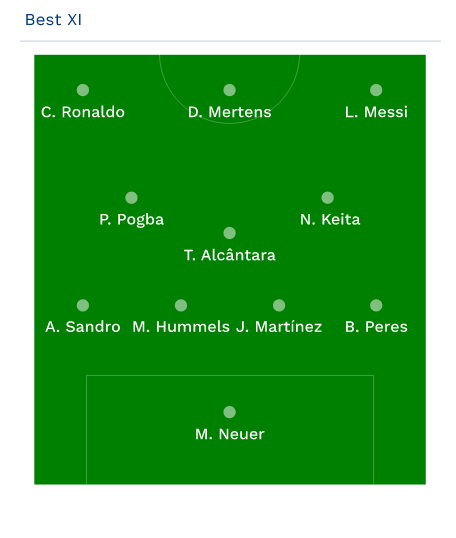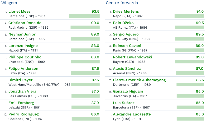 Il CIES , osservatorio sportivo indipendente con sede in Svizzera, ha pubblicato il loro Dream Team di questa stagione (riferita alle cinque leghe europee più importanti).