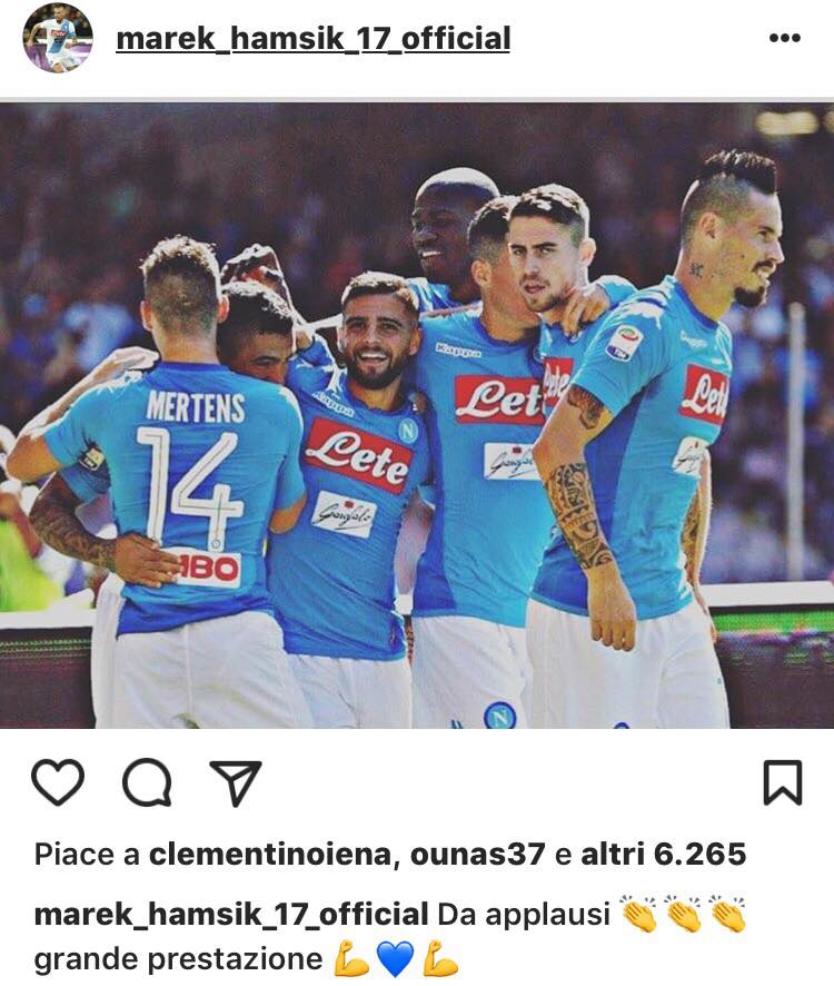 L’entusiasmo di Hamsik non è certamente diminuito e, dopo il pesante 6 a 0 nel derby campano contro il Benevento, ha festeggiato scrivendo su Instagram: “Da applausi. Grande prestazione”