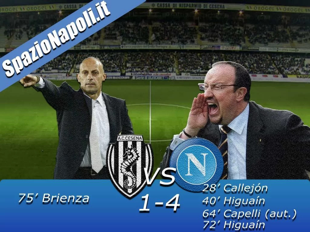 Napoli cinico – Inizio secondo tempo fotocopia del primo. Cesena in pressione alla ricerca del gol per riaprire la partita. Deve aver studiato bene il Napoli, Mimmo Di Carlo. Azzurri spesso troppo buoni a dispensare punti per la salvezza. Non questa sera però. I partenopei sono in palla e nonostante i soliti tremori difensivi trovano il terzo gol subito dopo il sessantesimo. Tipica azione di contropiede con assist splendido di esterno di Higuain che restituisce il favore al capitano. Non perfetta la conclusione dello slovacco, ci pensa Capelli in scivolata ad accompagnarla in rete. Cesena punito forse più di quanto meriterebbe ma che paga la sterilità offensiva. Ottima la prestazione del giovane Valzania. Il Napoli rischia di dilagare e quando Mertens subentra a De Guzman arriva la quarta segnatura. Il centravanti azzurro non è ancora sazio e finalizza con un pregevole movimento offensivo e siglando la doppietta personale. Il resto è carta per le statistiche. Azzurri che sciolinano il proprio gioco migliore e prendono il solito gol evitabile. La rete di Brienza serve infine solo per riempire il tabellino.
