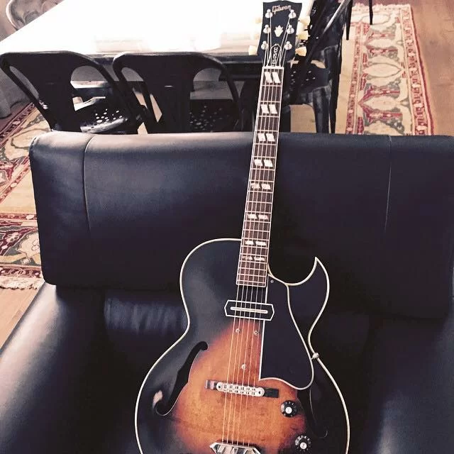 “Ciao Pino, ti sto pensando, forte. Questa è la tua Gibson 175Es che mi regalasti nell’88, cosi, senza nemmeno conoscermi bene di persona, la seconda volta che ci siamo visti, ti sei presentato con questo splendido strumento con annesse le sue corde “speciali” che in Italia non si trovavano. Questo è stato il primo segno della tua grande generositá che io non scorderò MAI. Ti porterò sempre nel cuore.