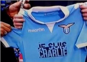 La Lazio abbraccia la causa del settimanale satirico francese “Charlie Hebdo”, colpito da un attentato terroristico in settimana a Parigi. “Je suis Charlie” è il messaggio scritto sulle proprie maglie, durante il derby di serie A contro la Roma.