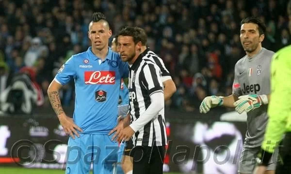 Ma è inconcepibile la tolleranza che molti arbitri – e tra essi c’è sicuramente Tagliavento – hanno nei confronti dei giocatori della Juve. Che protestano con veemenza, strattonano il direttore di gara, lo invitano ad ammonire gli avversari dopo un fallo di routine e lo sollecitano a concedere punizioni in loro favore. E questo accade spesso, non soltanto nelle partite contro il Napoli. Perché Tagliavento non ha ammonito o espulso Vidal che lo strattonava mentre ammoniva Tevez? Se il metro è questo, sbagliano gli azzurri a rispettare l’arbitro e a non fare gli isterici. Non fu un isolato episodio quello dell’autunno 2012,quando i giocatori bianconeri, perfino le riserve, circondarono il guardalinee Maggiani a Catania finché non fece annullare il gol del siciliano Bergessio: è un atteggiamento tipico della Juve, unica società ad aver trascinato in tribunale la Federcalcio per risarcimento danni post-Calciopoli (cifra ipotizzata 443,7 milioni di euro). Ciò fa capire bene quale pressione sia in grado di esercitare il club bianconero e perché Bonucci, un nazionale, uscendo dagli spogliatoi del San Paolo, con arroganza abbia risposto così alla domanda di un cronista sulle differenze tra Juventus e Napoli: «Noi siamo in Champions e voi in Europa League». Quando si dice lo stile Juve”.