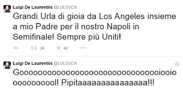 Due tweet ricchi di gioia quelli di Luigi De Laurentiis che ha guardato il big match tra Napoli ed Inter da Los Angeles insieme al papà e presidentissimo azzurro Aurelio De Laurentiis.