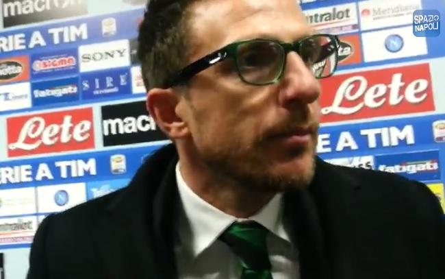 Disamina a trecentosessanta gradi quella del tecnico del Sassuolo Eusebio Di Francesco aimicrofoni di SpazioNapoli in mixed zone al “San Paolo” ieri sera al termine della gara contro il Napoli. Analisi non solo della prestazione ma anche della lotta per il secondo posto tra gli azzurri e la Roma, con una particolare battuta sulla rete di Duvan.