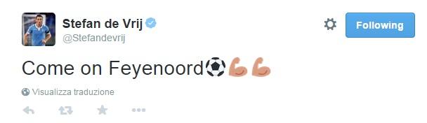 Il calciatore classe 1992, ex proprio del Feyenoord, ha twittato un deciso: “Come on Feyenoord” nel pre-partita della sfida tra olandesi e giallorossi.