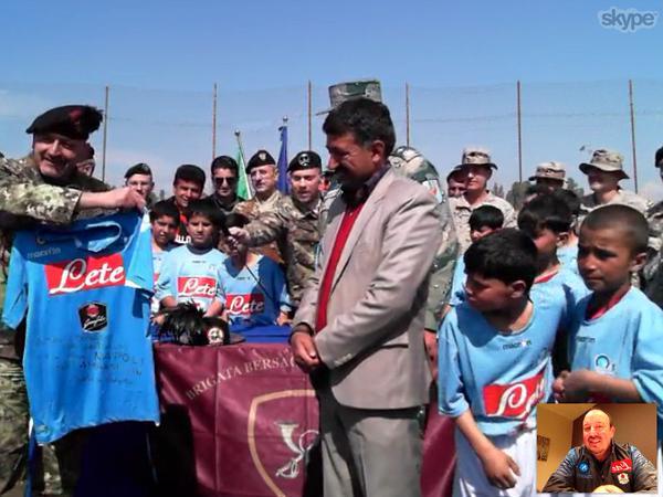 Gli fa eco anche il presidentissimo De Laurentiis: “Il calcio e il Napoli possono dare un po’ di gioia e di fiducia ai soldati italiani in Afghanistan e al suo popolo che cerca la pace”.