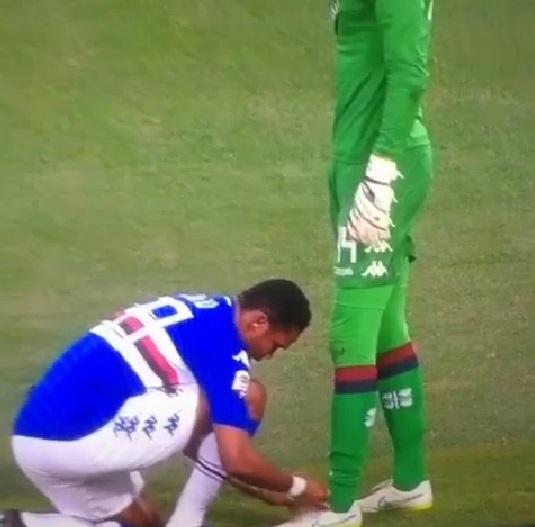Nel calcio non ci si sorprende più tanto facilmente. Ma alcune circostanze, seppur semplici, possono ancora stupire. È il caso di Samuel Eto’o, l’attaccante camerunese attualmente in forza alla Sampdoria. Nella sfida in corso tra i doriani e il Cagliari, l’ex calciatore di Barcellona e Inter ha stupito tutti: in una pausa di gioco si è chinato ai piedi del portiere avversario, Brkic, per allacciargli le scarpe. Un atto semplice, disincantato, che ci ricorda la genuinità troppo spesso offuscata del calcio.