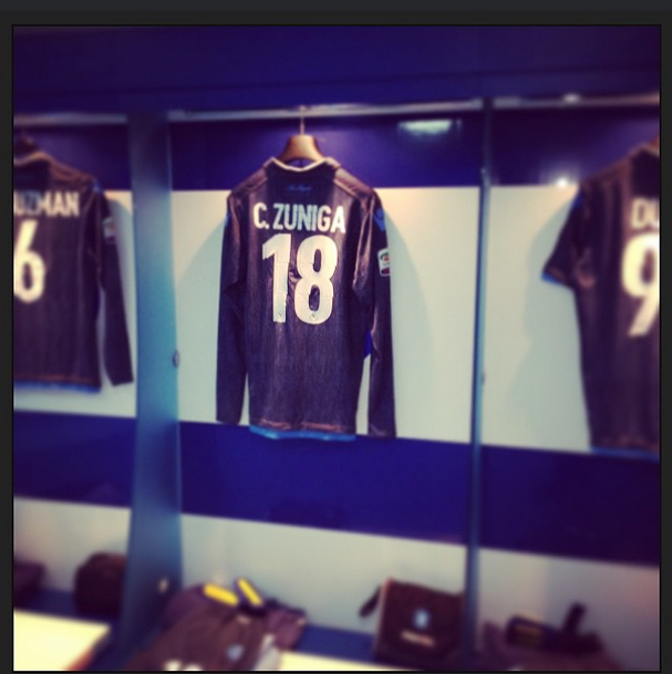 Un’immagine che ha bisogno di pochi commenti. Napoli – Inter è anche la sfida che attesta, finalmente, il ritorno tra i convocati di Camilo Zuniga, assente dalla sfida d’andata contro i nerazzurri del 19 ottobre scorso. La società azzurra, tramite il proprio profilo Instagram ufficiale, ha celebrato in questo modo il ritorno del colombiano: “Nello spogliatoio del San Paolo c’è anche lui… #NapoliInter #ForzaNapoliSempre”