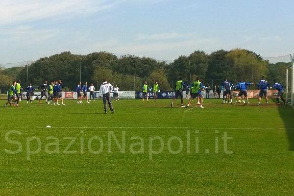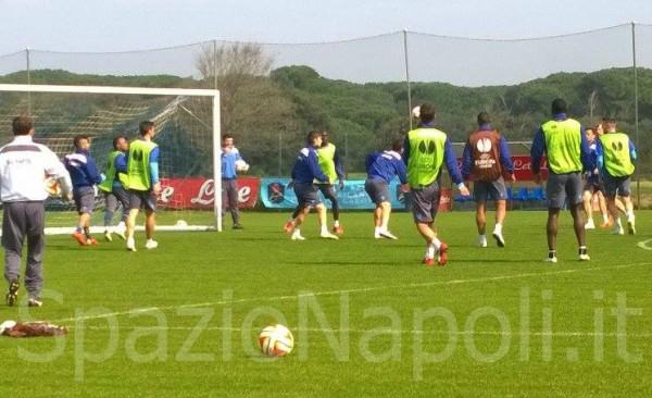 Allenamento mattutino per il Napoli a Castel Volturno che prepara la sfida di domani sera al “San Paolo” contro la Dinamo Mosca, valida per gli ottavi di finale di andata di Europa League. Esercizi tecnico tattici per gli azzurri, con partitella a tutto campo.
