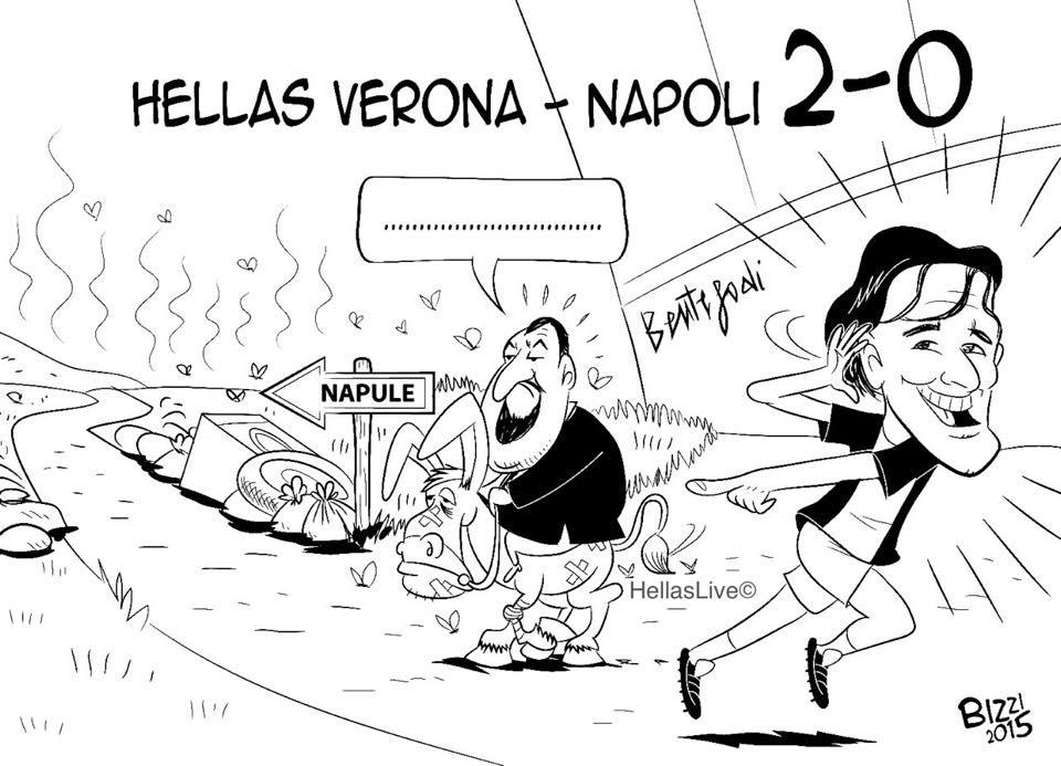 Una volgarità che ha trovato adito non solo negli ambienti caldi dello stadio ma, ed è un dato preoccupante, anche sul sito di una testata giornalistica. Parliamo di HellasLive.it che quest’oggi ha pubblicato una vignetta, secondo il loro modo di pensare, ironica. Nell’immagine allegorica è possibile vedere Benitez in sella ad un asino malconcio diretti verso Napoli. Nulla di trascendentale, se non fosse che la città partenopea è stata raffigurata ancora una volta con lo stereotipo dei rifiuti. Assolutamente ben identificabili sacchetti ed altri oggetti di rimessa, nonché le linee ondulate che nel linguaggio fumettistico stanno ad indicare il cattivo odore.