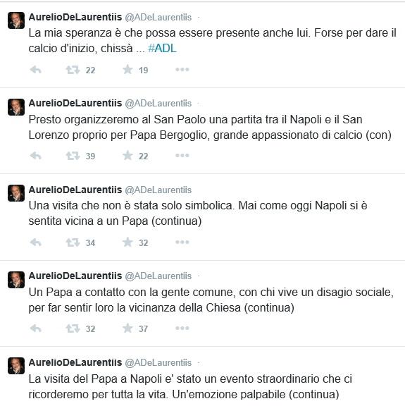 TWEET+%26%238211%3B+De+Laurentiis+e+le+belle+parole+per+la+visita+del+Papa+a+Napoli+con+una+particolare+idea+in+programma