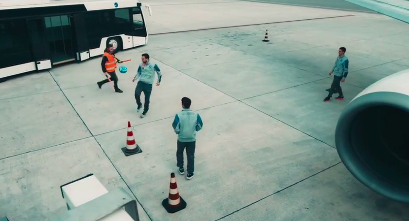 Questo il video dell’ultimo spot del Napoli per Meridiana: gli azzurri giocano a calcio in aeroporto, e all’improvviso il pallone finisce… sulla fiancata dell’aereo!