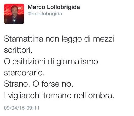 Fino ad oggi. Il giornalista evidentemente, aveva ancora un sassolino nella scarpa. A chi sia realmente riferito il suo tweet al veleno non è dato sapere ma, dati gli indizi, è molto probabile si tratti di Maurizio de Giovanni. Ecco cosa scrive sul noto social Lollobrigida.
