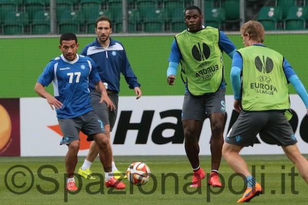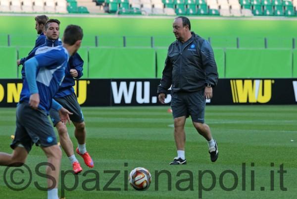 Dopo la conferenza stampa in cui hanno parlato Benitez e Insigne, il Napoli è sceso in campo questo pomeriggio, alla Volkswagen Arena, per sostenere l’allenamento di rifinitura in vista della partita di domani. Questa la foto pubblicata dal profilo Twitter del club.