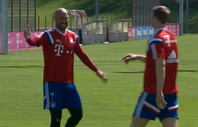 Volti distesi e sorridenti quelli del Bayern Monaco dopo la vittoria del 25′ Meisterschale. Sul canale Youtube ufficiale della squadra bavarese è stato infatti pubblicato un video che ritrae quattro giocatori della squadra alle prese col calcio tennis alla fine dell’allenamento: i due portieri Neuer e Reina sfidano Pizarro e Schweinsteiger.