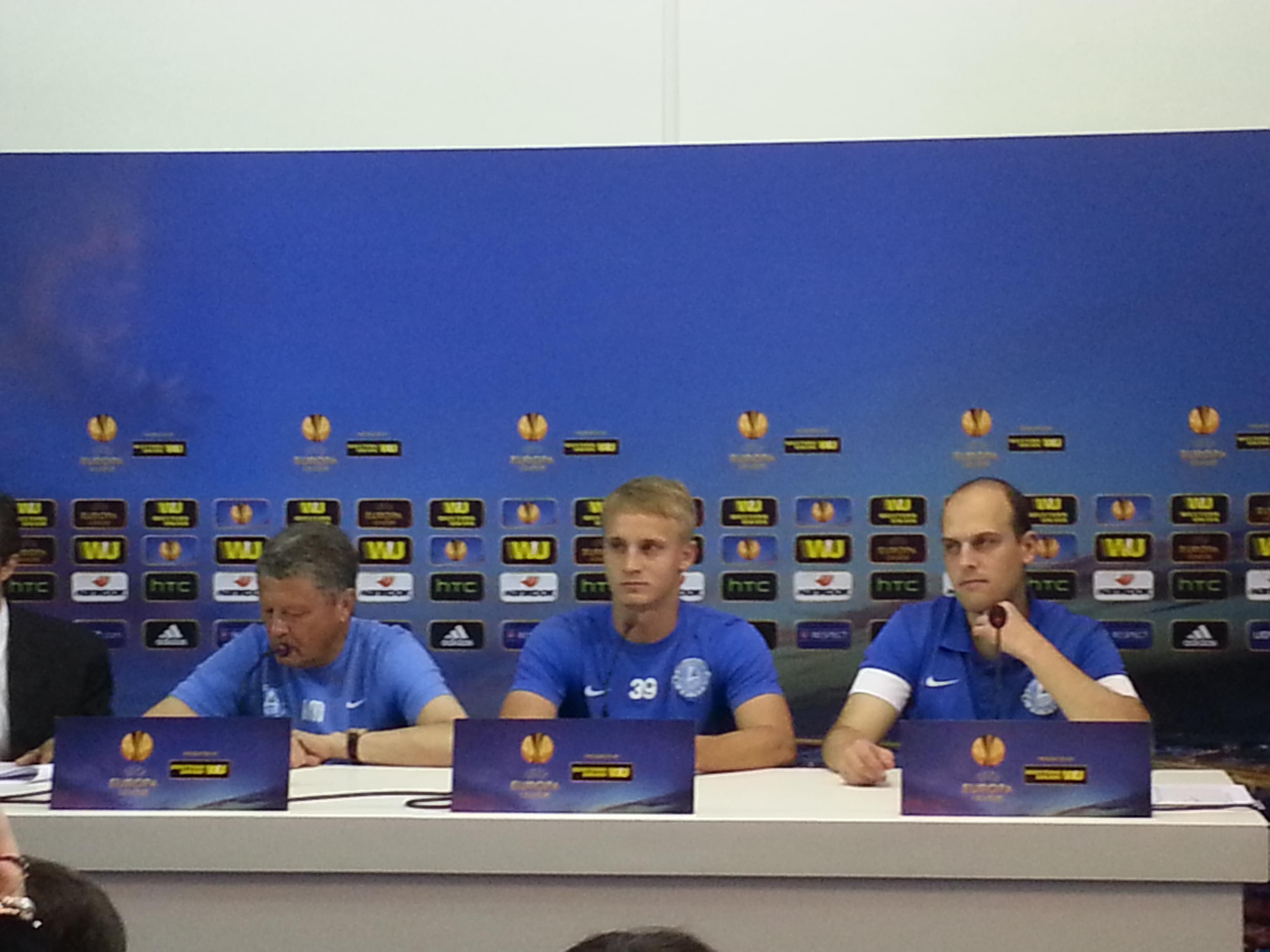 Il Dnipro ha parlato in conferenza stampa, al San Paolo, come previsto dal consueto cerimoniere dell’Uefa. Hanno preso la parola il tecnico Myron Markevych e il difensore Oleksandr Svatok.