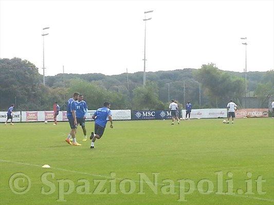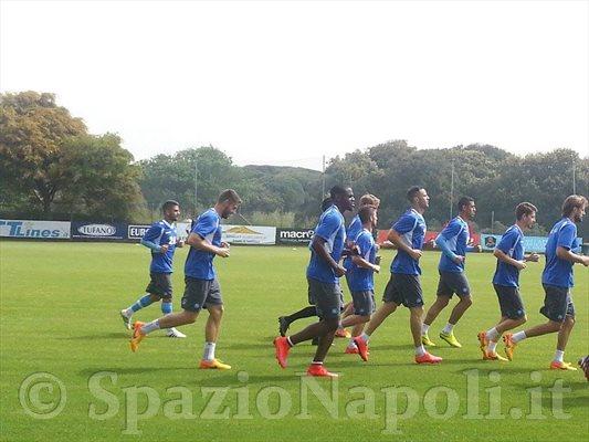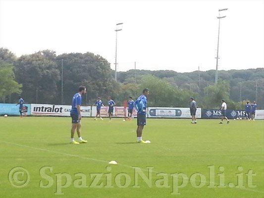 La squadra è scesa in campo alle 10.30. Grande concentrazione ma volti distesi con un Insigne ispirato che scherza con tutti. Seduta tattica per gli azzurri. Sovrapposizioni e scambi di prima. Gli azzurri si sono inoltre esercitati con tiri dalla distanza, in particolare Higuain, Callejon ed Insigne.