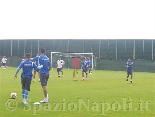 Azzurri in campo a Castel Volturno per l’allenamento di rifinitura aperto in parte alla stampa. Gli uomini di Benitez si preparano in vista della partita di domani sera contro la Dnipro, valevole per l’andata delle semifinali di Europa League.