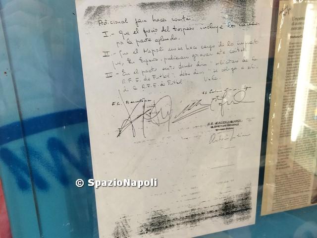 Angelo ci ha aperto le porte di questo suo bar, che oltre ad essere un punto di ritrovo, è un museo di cimeli storici azzurri. Si passa dalle scarpe che Maradona ha indossato nel giorno della sua presentazione a Fuorigrotta sino al contratto che lo stesso ha firmato nel suo passaggio dal Barcellona a Napoli. Per non parlare poi delle magliette, ovviamente autentiche, che lo stesso D10s ha lasciato in eredità a questa famiglia.