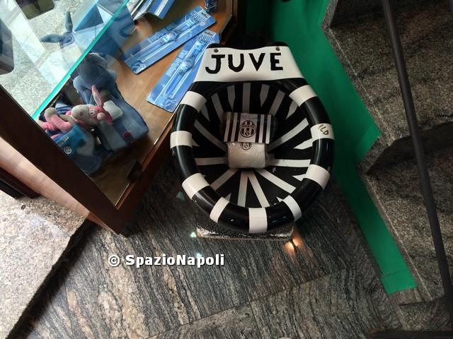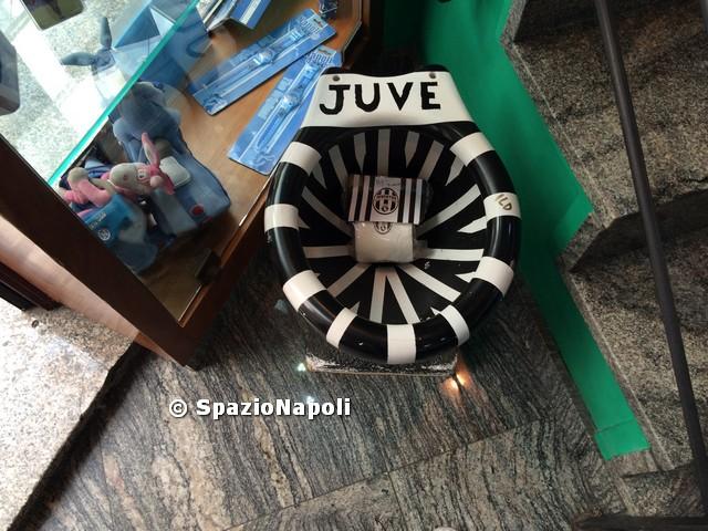 Questa mattina siamo andati al Centro Direzionale di Napoli, colpiti dal bar intitolato “Juve Merda” che abbiamo riportato con alcune foto esterne gli scorsi giorni. Ebbene, ci aspettavamo di trovare un localetto piccolo aperto con chissà quali attese promozionali. Si sa che in questi giorni di crisi ogni idea è buona per risollevare l’economia e per lanciare un’attività. Invece, ci siamo dovuti ricredere, perché dietro questo bar c’è una vera e propria pagina di storia napoletana ed azzurra.
