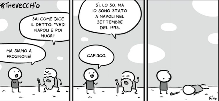 Ora. Che il colera a Napoli, nel 1973, ci sia stato, è cosa nota. Meno noto a chi ha realizzato questa vignetta è il fatto che quell’epidemia sia stata dovuta al consumo di cozze importate da altri Paesi, la Tunisia su tutti. Ma si sa, se c’è da attaccare Napoli, un modo lo si trova sempre. Vittimismo, qualcuno dirà. Realtà dei fatti, inconfutabile, per chi invece ci ragiona su e, soprattutto, non si ferma a degli stupidi preconcetti. Che molto spesso poi, sono sinonimo di ignoranza. Ancor più triste che questa rivista sia stata presentata al Napoli Comicon nelle scorse settimane.