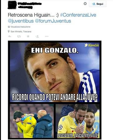 Da Torino, intanto, partono gli sfottò, rimarcando il mancato arrivo di Higuain alla Juve e un “presunto” pentimento. Evidentemente i tifosi bianconeri non hanno mai digerito il suo sfumato acquisto…