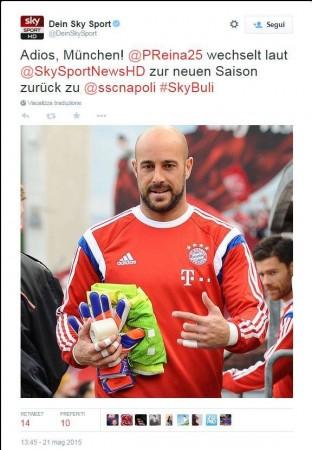 Giunto ormai ai titoli di coda il matrimonio tra Pepe Reina e il Bayern Monaco. Il portiere spagnolo, da tempo ormai vicino al ritorno a Napoli, secondo quanto riferito da Dein Sky Sport, avrebbe già salutato i compagni di squadra pronto a volare quanto prima ai piedi del Vesuvio. Accordo già trovato con la società partenopea, motivo per il quale l’addio ai bavaresi non è più solo un’ipotesi, ma una verità che prende forma col passare dei giorni.