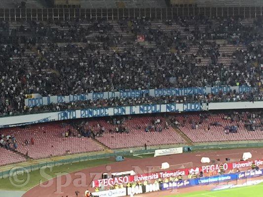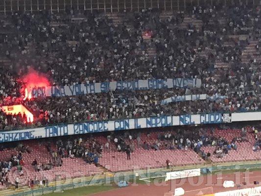 Sfuma l’obiettivo Champions per il Napoli. In una partita grottesca, assurda e altalenante la Lazio si impone 2-4 al San Paolo. A gara in corso è cominciata una pesante contestazione da entrambe le Curve che hanno esposto svariati striscioni contro il presidente Aurelio De Laurentiis, accompagnati dal coro: “De Laurentiis figlio di p……”.