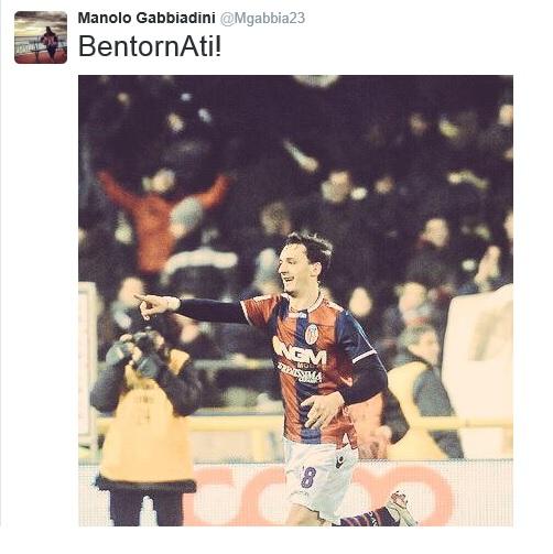 Lui il Bologna lo conosce bene, vestendo la maglia rossoblù nel 2013 per una stagione. Ed ecco che la gioia esplode, insieme ai ricordi, quella di Manolo Gabbiadini che si complimenta con l squadra di Delio Rossi con un semplice tweet ma dai mille significati.