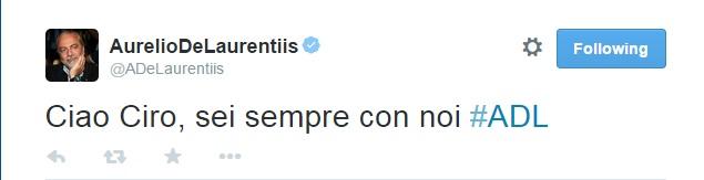 Non è un giorno come un altro per Napoli ed il Napoli. Alle sei del mattino del 24 giugno 2014 si spegneva al Policlinico Gemelli di Roma la vita di Ciro Esposito. A distanza di un anno, il presidente del Napoli Aurelio De Laurentiis l’ha voluto ricordare con un tweet attraverso il suo profilo ufficiale:
