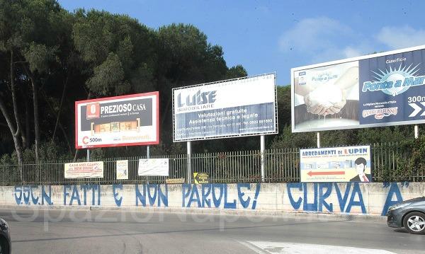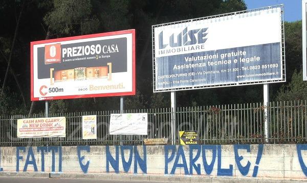Ancora un messaggio di protesta, questa volta firmato Curva A ed apposto nei pressi del Centro Sportivo di Castel Volturno questa mattina. Il soggetto del messaggio è come sempre l’operato del presidente De Laurentiis, accusato dai tifosi di parlare tanto ed agire poco: “SSCN, fatti e non parole” il testo degli stessi. Ecco le foto in esclusiva di SpazioNapoli.