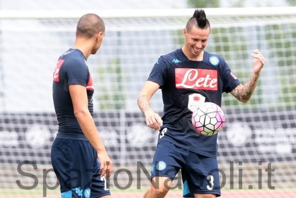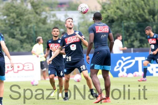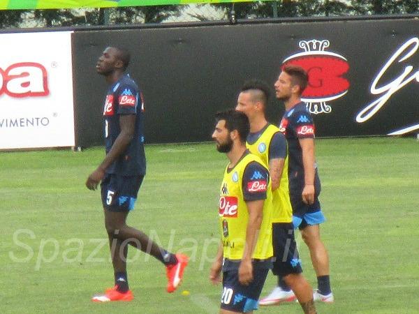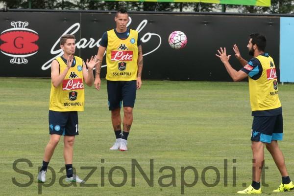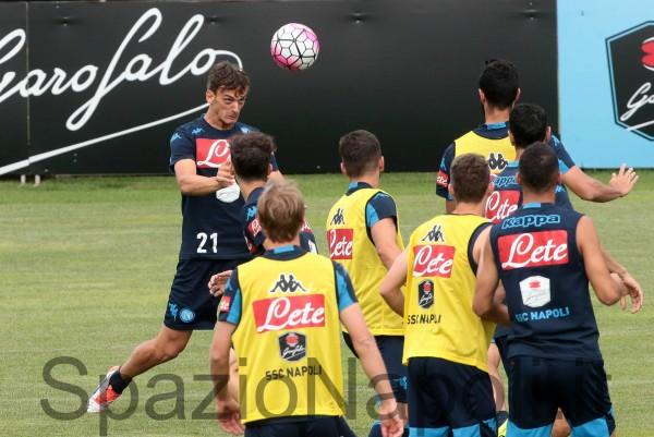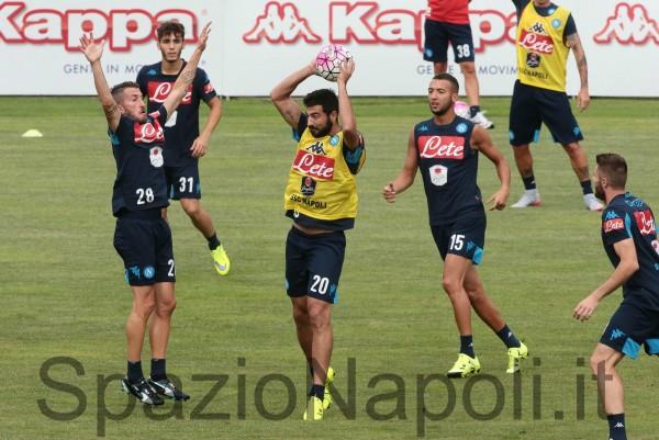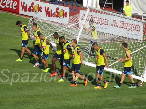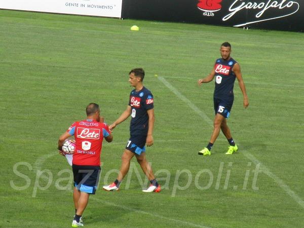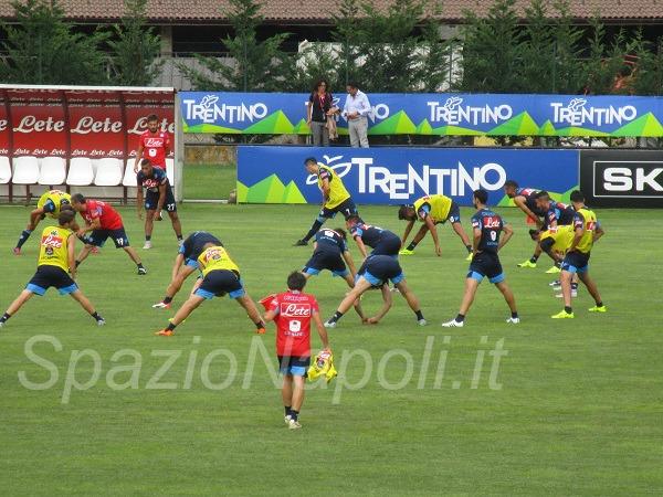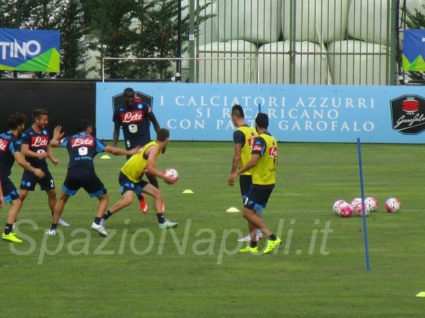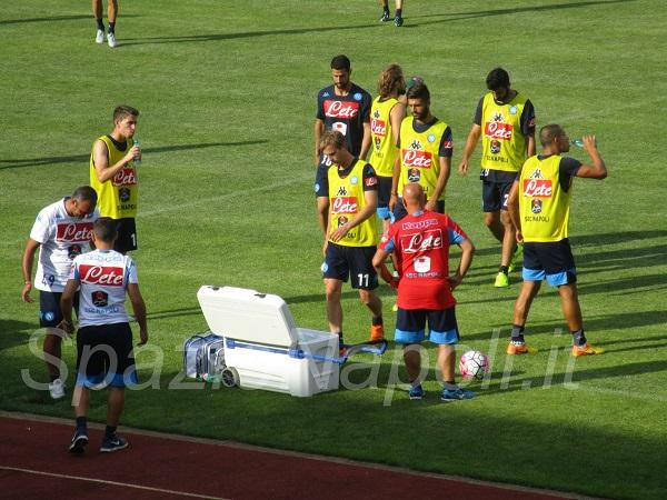 ore 17.49 Sta per iniziare il solito lavoro di centrocampo ed attacco diviso in due gruppi, i gialli ed i blu. I primi vedono Rafael in porta; Henrique, Albiol, Luperto, Strinic; Inler, Jorginho, Hamsik; Callejon, Duvan ed Insigne. Sarri li coadiuva, con indicazioni e movimenti. Il secondo vede invece Sepe in porta; Maggio, Koulibaly, Britos, Ghoulam; David Lopez, Valdifiori, De Guzman; El Kaddouri, Mertens e Gabbiadini. Corsa per i giovani Gaetano e Romano. Personalizzato per Pepe Reina.