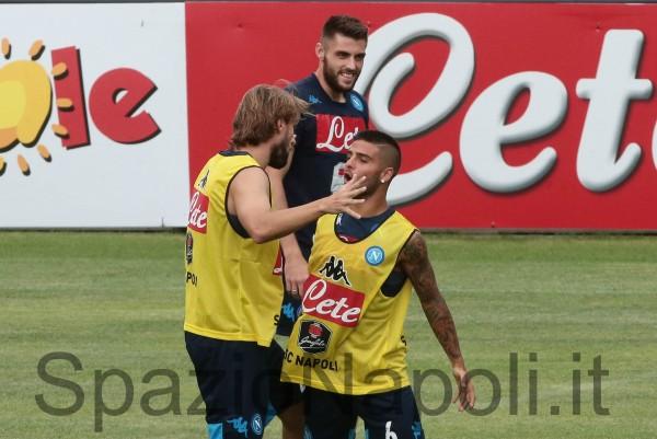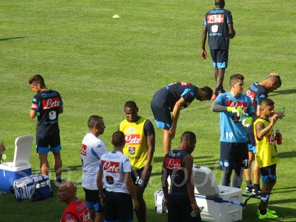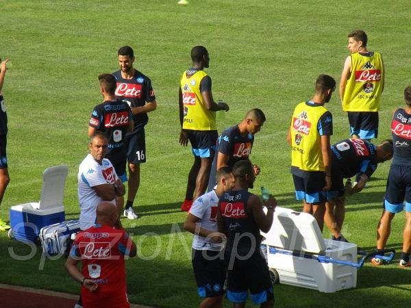ore 18.25 Termina la fase tattica, inizia la partitella a campo ridotto. Protagonista assoluto Luigi Sepe, con numerose parate su Zapata, Insigne ed Hamsik. Bellissima la parata in tuffo dell’estremo difensore su mezza girata dello slovacco. Come sempre Sarri quando giudica errato un movimento, ferma il gioco e lo spiega ai suoi uomini.