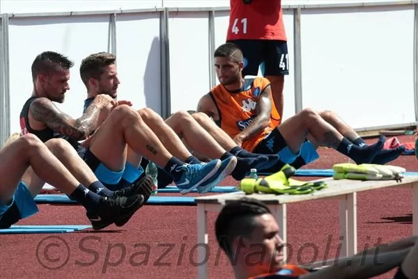 Benvenuti tifosi del Napoli! SpazioNapoli seguirà per voi live gli allenamenti mattutini del Napoli sul campo di Carciato di Dimaro. Azzurri in campo da qualche minuto, divisi in due gruppi ed impegnati tra stretching ed allenamenti focalizzati sul potenziamento muscolare.