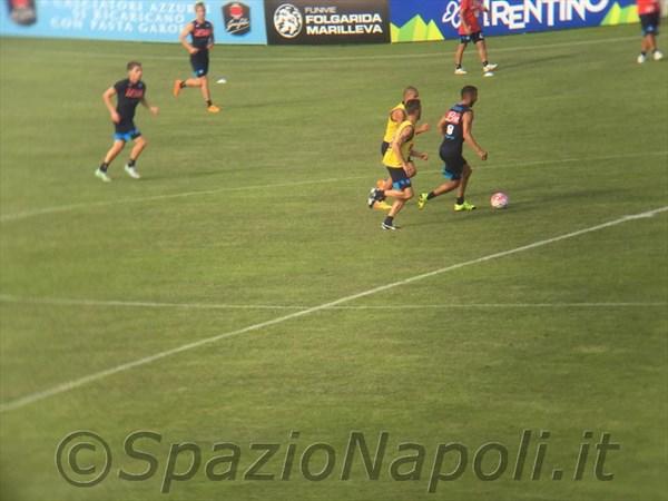 17.52 – Inizia la partitella a campo ridotto. Blu (4-3-1-2): Gabriel; Henrique, Koulibaly, Britos, Strinic; Lopez, Jorginho, de Guzman; El Kaddouri; Gabbiadini, Mertens. Gialli (4-3-3): Reina; Maggio, Albiol, Luperto, Ghoulam; Inler, Valdifiori, Romano; Insigne, Zapata, Callejon.