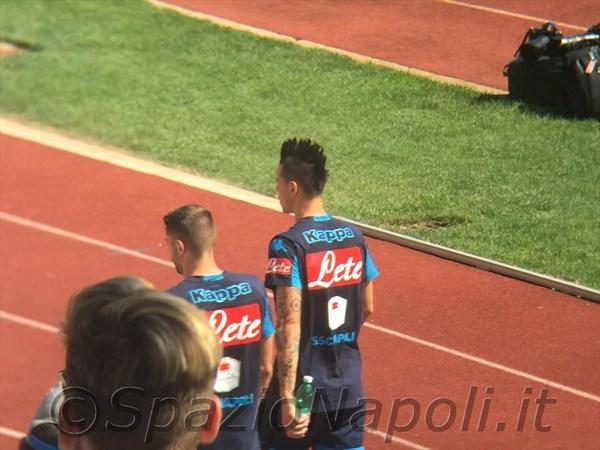 10.45 – Hamsik e David Lopez rientrano negli spogliatoi. Lo slovacco acclamato dal pubblico di Dimaro.