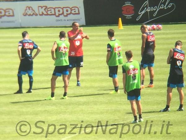 10.03 – Giocatori divisi in due squadre: esercizi di possesso palla con uno, massimo due tocchi a testa. Marek Hamsik si allena ancora a parte.