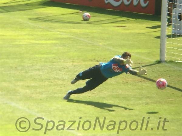 10.15 – I portieri si esercitano con lo “sparapalle”, ovazione per Reina, ma anche tanti applausi per Rafael che si è esibito con ottime parate.