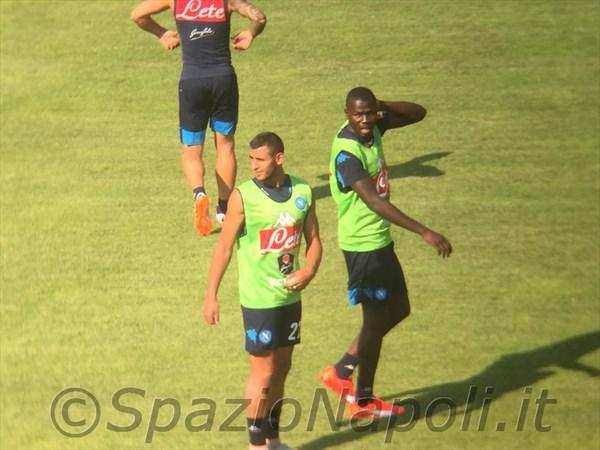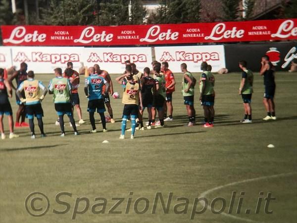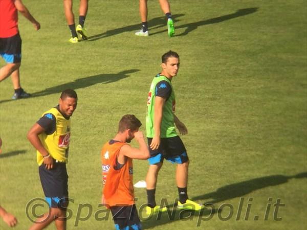 17.52 – Partitella a campo ridotto per gli azzurri. Blu (4-3-1-2): Rafael; Henrique, Albiol, Luperto, Ghoulam; Romano, Valdifiori, Inler; El Kaddouri; Zapata, Callejon. Arancioni (4-3-3): Reina; Maggio, Koulibaly, Britos, Bonomi (staff Sarri); Bifulco, Jorginho, de Guzman; Insigne, Gabbiadini, Mertens