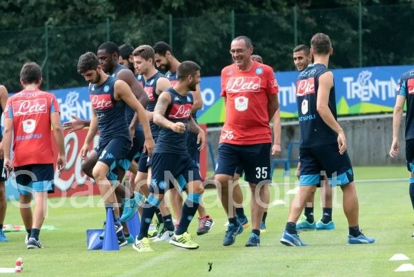 Allenamento mattutino come sempre molto intenso oggi per il Napoli sotto il caldo sole di Dimaro. Ecco gli scatti più belli di tutta la seduta sotto gli attenti occhi di mister Sarri ed il direttore sportivo Giuntoli.