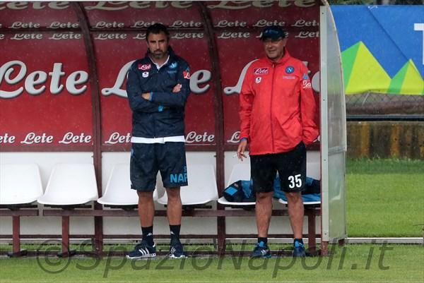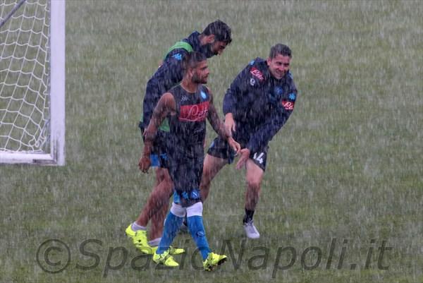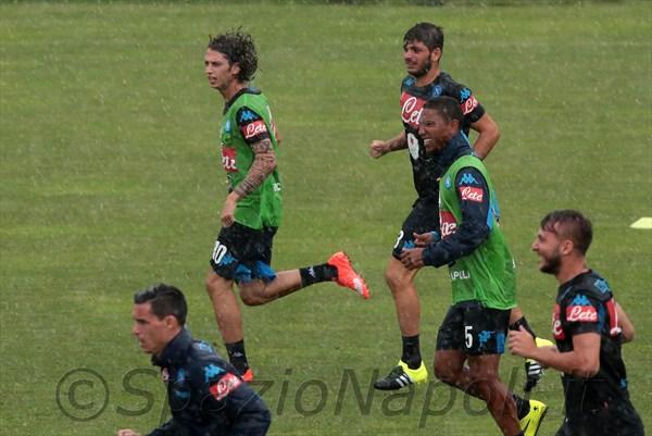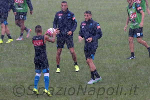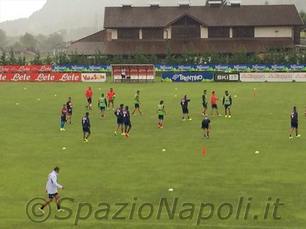 17.53 – Partitella a campo ridotto. Verdi (4-3-1-2) Gabriel, Ghoulam, Luperto, Albiol, Maggio; Inler, Valdifiori, David Lopez; Insigne; Callejon, Gabbiadini. Blu (4-3-1-2): Rafael; Allegra, Henrique, Koulibaly, Dezi; Romano, Jorginho, de Guzman; El Kaddouri; Bifulco, Mertens.