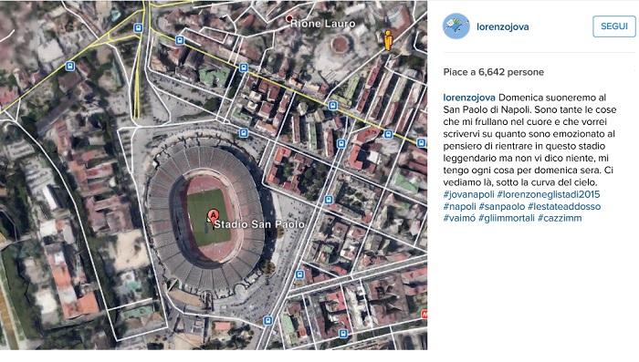 Bellissimo ed intenso il messaggio pubblicato da Lorenzo Jovanotti che domenica suonerà allo Stadio San Paolo. Dopo le numerose polemiche aizzate dalla società, i toni tornano a placarsi. Grande l’entusiasmo del cantautore italiano. “Domenica suoneremo al San Paolo di Napoli. Sono tante le cose che mi frullano nel cuore e che vorrei scrivervi su quanto sono emozionato al pensiero di rientrare in questo stadio leggendario ma non vi dico niente, mi tengo ogni cosa per domenica sera. Ci vediamo là, sotto la curva del cielo”.