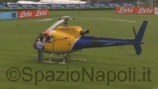 Insolito episodio al termine della partita. Il presidente del Napoli Aurelio De Laurentiis, la consorte Jacqueline e il capitano azzurro Marek Hamsik hanno lasciato il campo in elicottero.