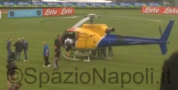Insolito episodio al termine della partita. Il presidente del Napoli Aurelio De Laurentiis, la consorte Jacqueline e il capitano azzurro Marek Hamsik hanno lasciato il campo in elicottero.
